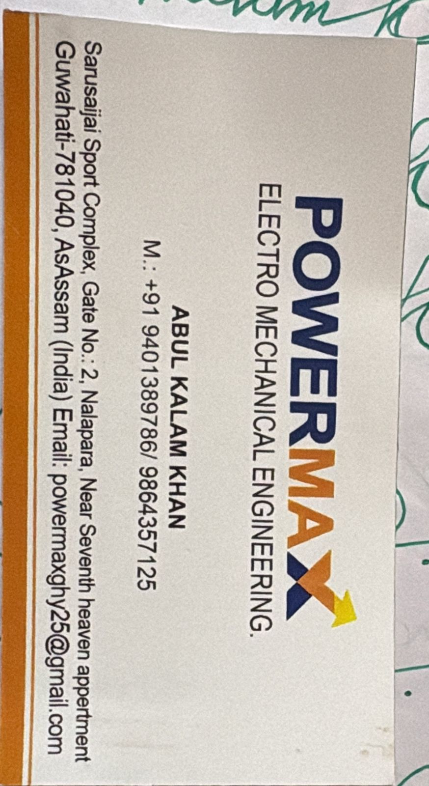 ABUL KALAM KHAN is a resident of the state of Assam and serves as the proprietor of POWERMAX ELECTRO MECHANICAL ENGINEERING.