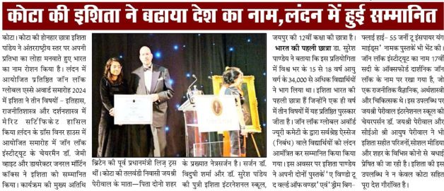 Kota's daughter Ishita Pandey secured admission into the University of Southern California in Los Angeles, USA under the Annenberg School for Communication and Journalism. During her academic visit, she presented her published books to USC President Beong-Soo Kim and Dean Willow Bay, earning appreciation for her creative and literary contribution.